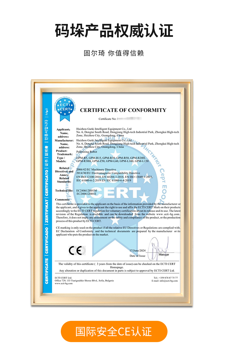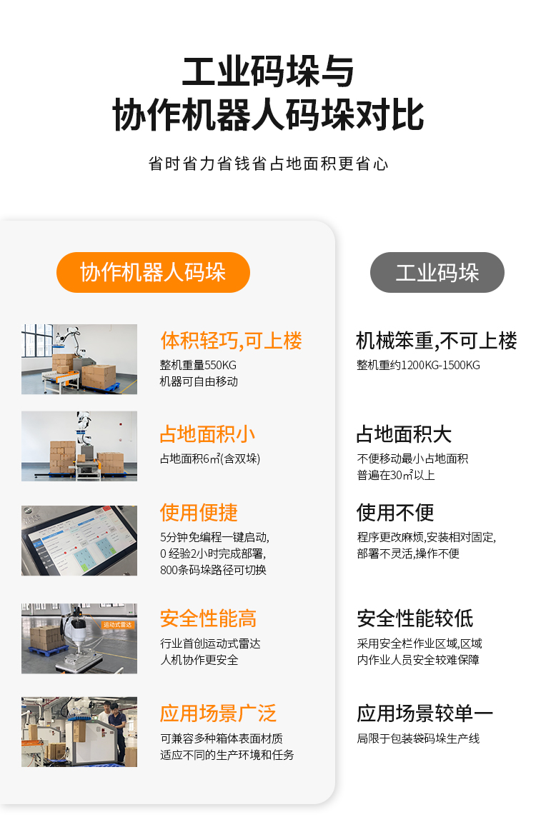 提供3年質(zhì)?;蛘咦鳂I(yè)1000萬(wàn)次的售后服務(wù)。協(xié)作機(jī)器人碼垛,與人類工作人員緊密合作,提高生產(chǎn)效率、靈活適應(yīng)不同任務(wù)。安全配備傳感器,為工作人員創(chuàng)造更安全高效的工作環(huán)境,外形精巧美觀,調(diào)整方便簡(jiǎn)單,本設(shè)備采用觸控屏操作,實(shí)現(xiàn)智能化操作管理,簡(jiǎn)便、易掌握??纱蟠蟮販p少勞動(dòng)人員和降低勞動(dòng)強(qiáng)度??瑟?dú)立使用也可配套自動(dòng)供棧機(jī)和棧板輸送機(jī)來(lái)實(shí)現(xiàn)全自動(dòng)碼垛系統(tǒng),廣泛應(yīng)用于多個(gè)行業(yè)的碼垛工序,如紙箱類、醫(yī)藥類、日用品、食品、飲料、化妝品、金屬制品等。