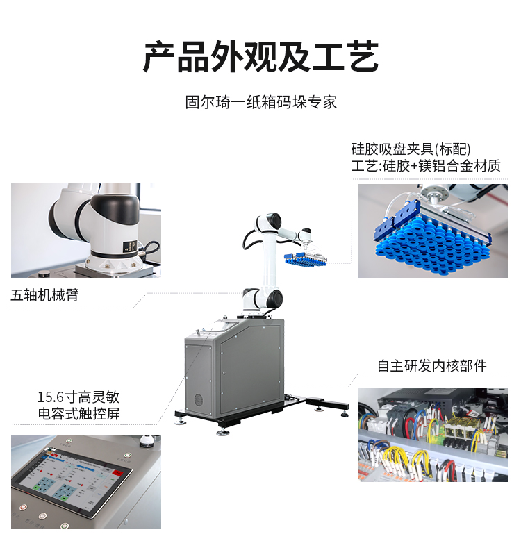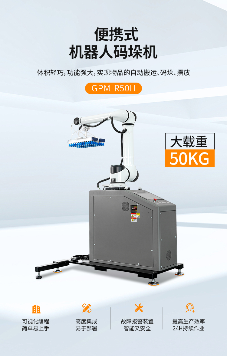 50KG協(xié)作機器人碼垛,與人類工作人員緊密合作,提高生產(chǎn)效率、靈活適應(yīng)不同任務(wù)。安全配備傳感器,為工作人員創(chuàng)造更安全高效的工作環(huán)境,外形精巧美觀,調(diào)整方便簡單,本設(shè)備采用觸控屏操作,實現(xiàn)智能化操作管理,簡便、易掌握??纱蟠蟮販p少勞動人員和降低勞動強度。可獨立使用也可配套自動供棧機和棧板輸送機來實現(xiàn)全自動碼垛系統(tǒng),廣泛應(yīng)用于多個行業(yè)的碼垛工序,如紙箱類、醫(yī)藥類、日用品、食品、飲料、化妝品、金屬制品等。