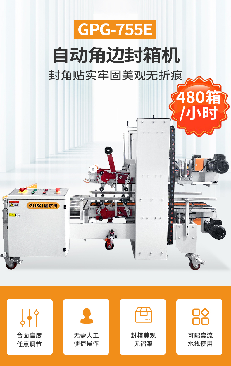 自動(dòng)四角邊封箱機(jī)是紙箱經(jīng)前段封箱機(jī)中間上下封口后,進(jìn)入90度轉(zhuǎn)角機(jī)構(gòu),光電感應(yīng)后由推箱板推入角邊封箱機(jī),同時(shí)封紙箱上下四個(gè)角邊,封箱效率快,兩排毛刷同時(shí)撫平膠帶,使其緊緊貼住紙箱,折角無褶皺,美觀牢固,適合對外包裝要求比教高的客戶和廠家。特別是出口產(chǎn)品和食品行業(yè),廣泛應(yīng)用于食品、醫(yī)藥、飲料、煙草、日化、汽車、線纜、電子等行業(yè)。